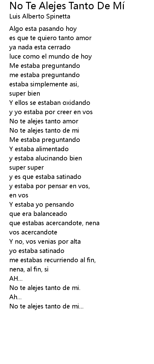 No Te Alejes Tanto De Mí No Te Alejes Tanto De Mi Lyrics