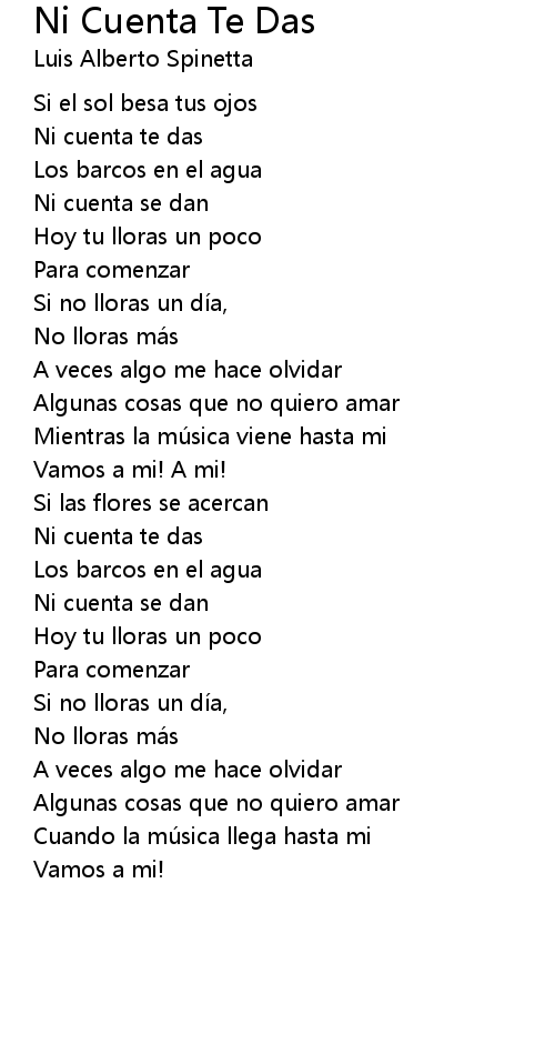 | Song | Ni Cuenta Te Das |