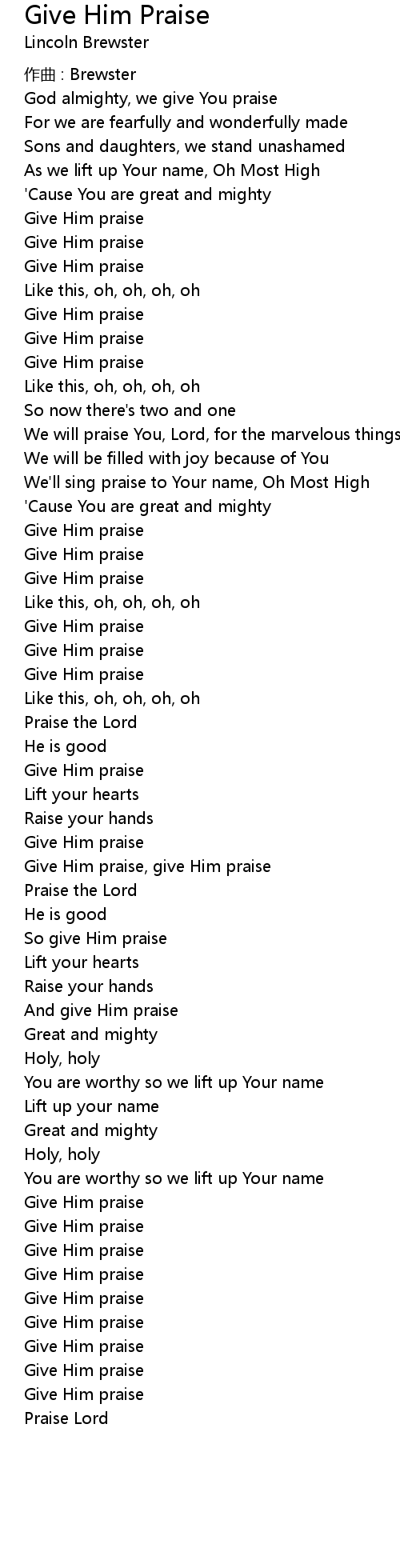 | We will praise You, Lord, for the marvelous things You' ve done | |