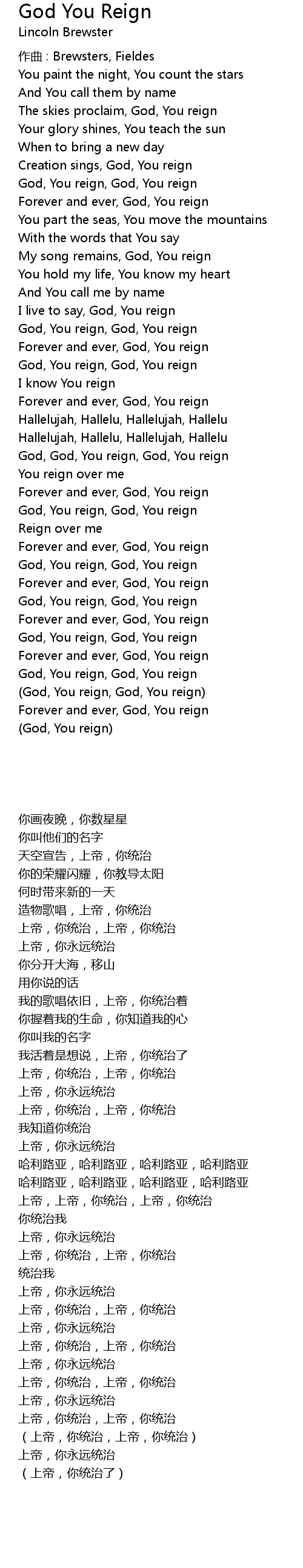 | God, God, You reign, God, You reign | |
