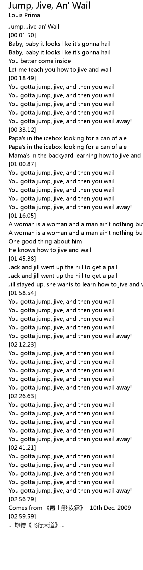| [02:49.44] | You gotta jump, jive, and then you wail |