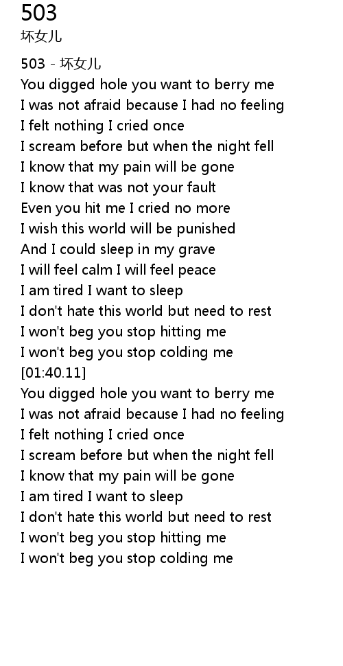 | [00:00.85] | 503 huai nv er |