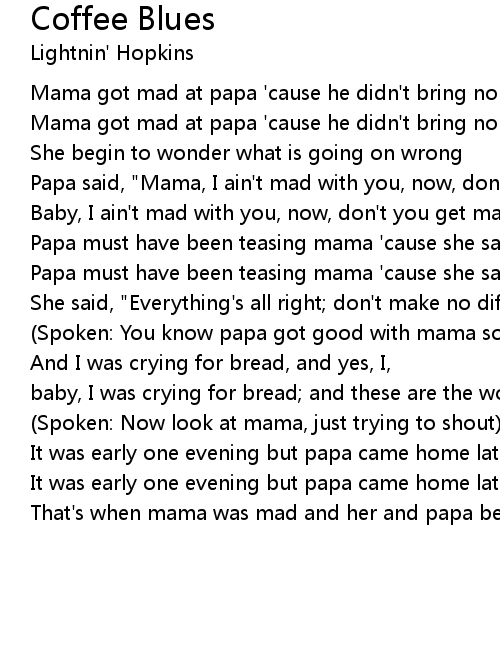 Mama got mad at papa 'cause he didn't bring no coffee home |