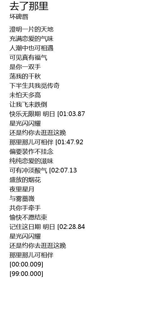 | [02:22.64]记住这日期 明日 [02:28.84] | 到处去探索世界 |