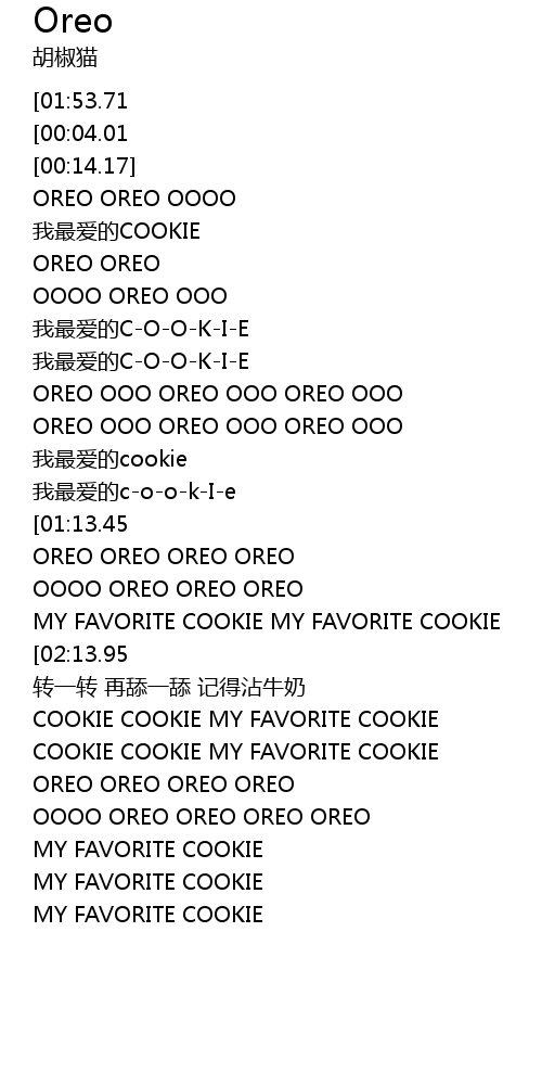 | [02:22.44][02:13.95] | OREO OREO OREO OREO…… |