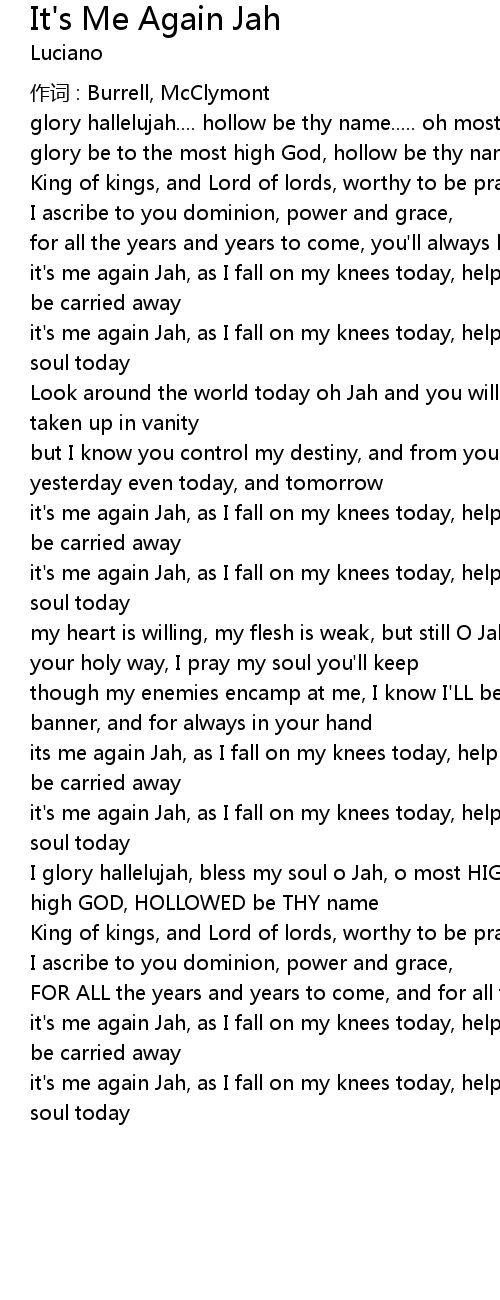 | it' s me again Jah, as I fall on my knees today, help me GOD I pray, don' t wanna be carried away | |