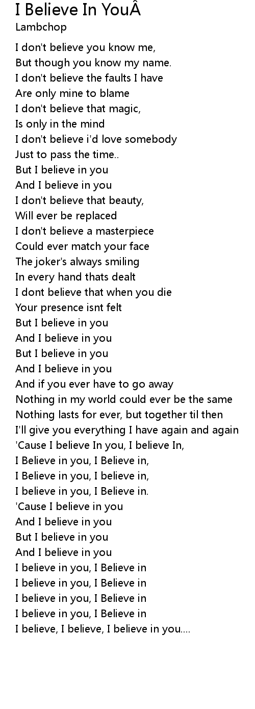 | [02:07.77] | 'Cause I believe In you, I believe In, |