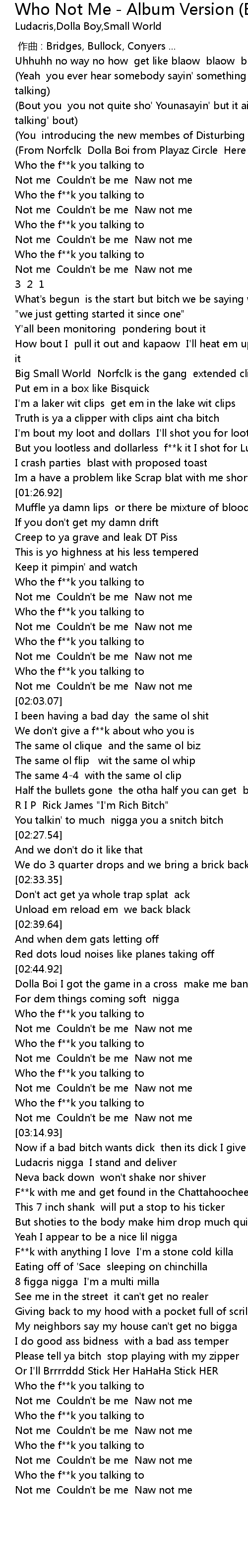 | Song | Who Not Me - Album Version (Explicit) |