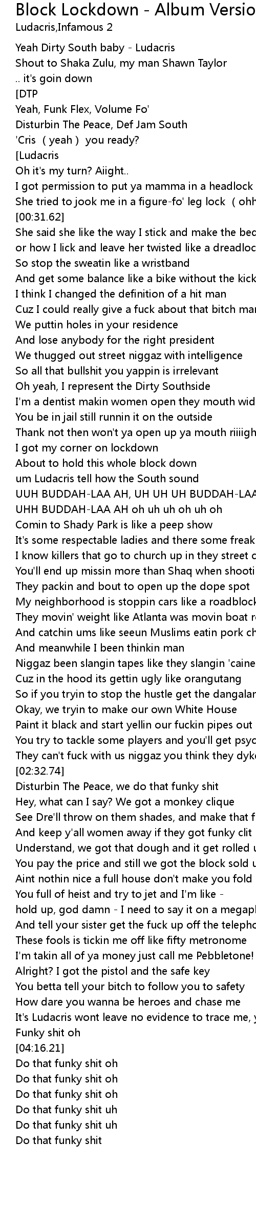 | [00:01.23] | Yeah Dirty South baby - Ludacris |