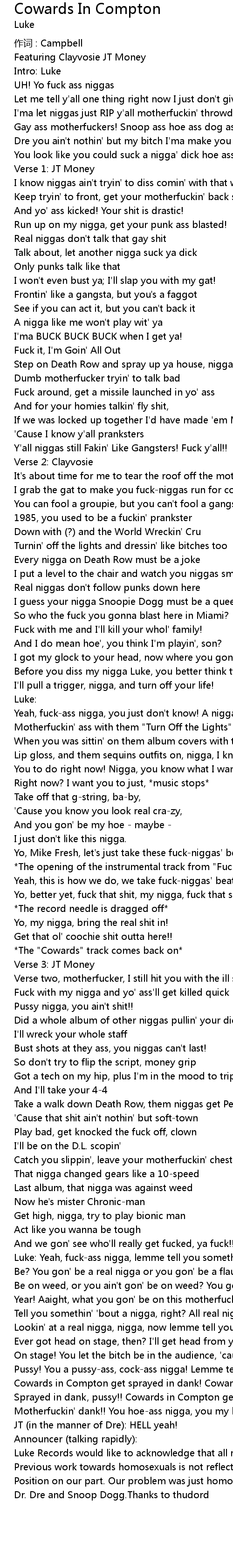 | Luke: Yeah, fuckass nigga, lemme tell you somethin'! What you gon' | |