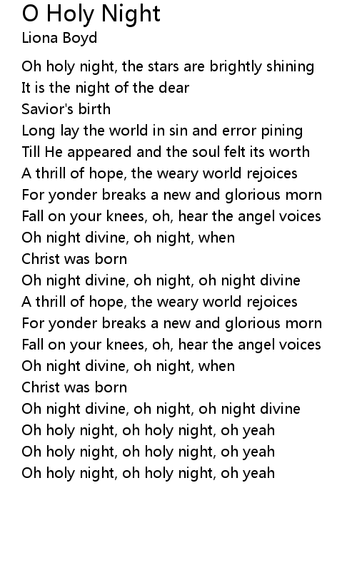 Oh holy night, oh holy night, oh yeah
