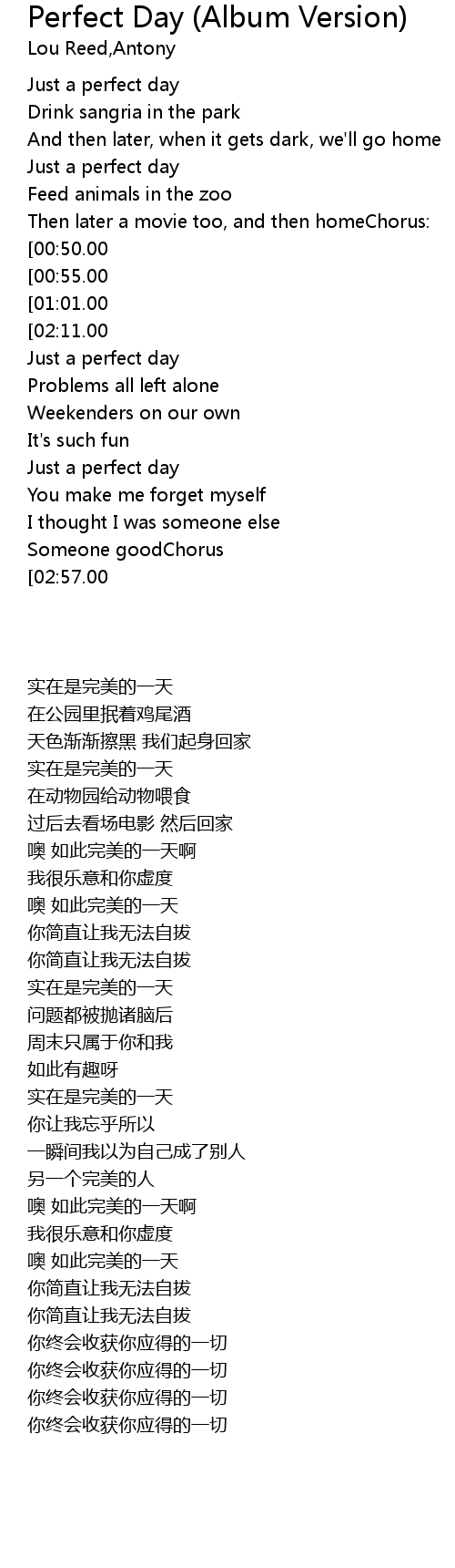 | [01:57.00][00:50.00] | Oh it's such a perfect day |