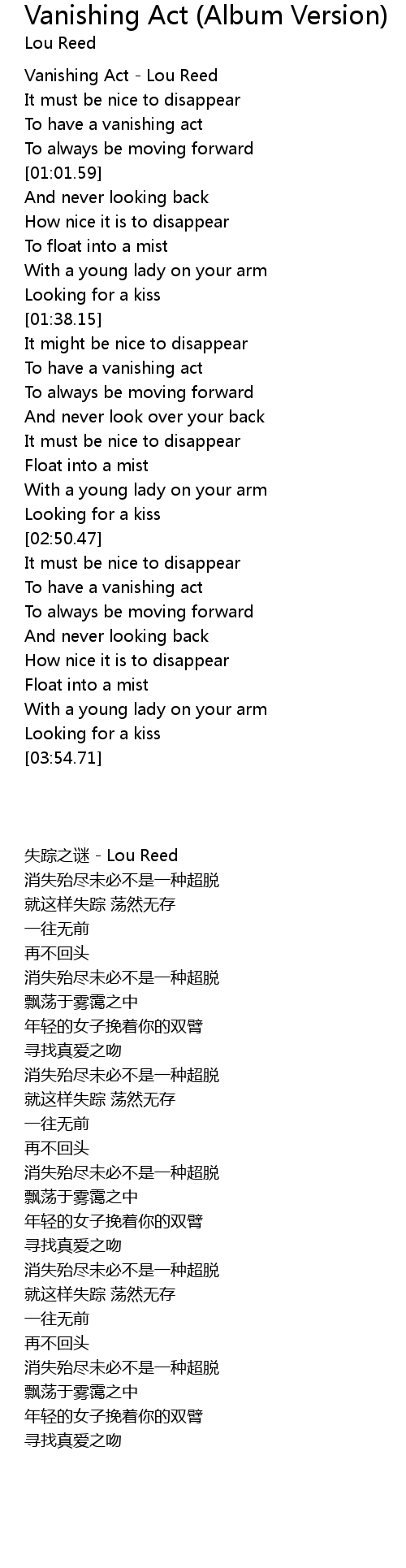 | [00:00.22] | Vanishing Act - Lou Reed |
