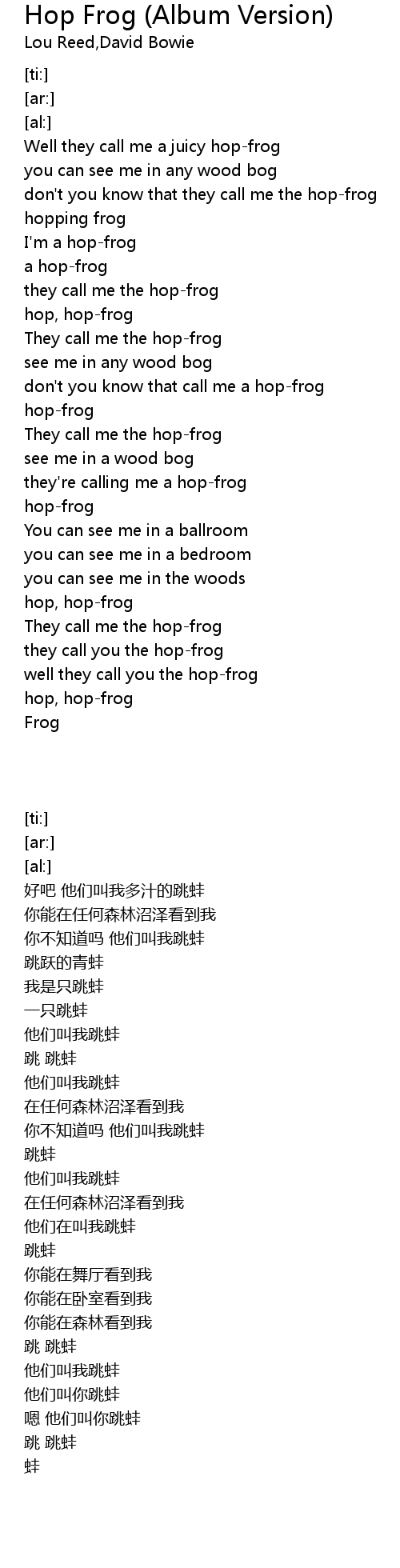 | [00:53.42] | They call me the hop-frog |