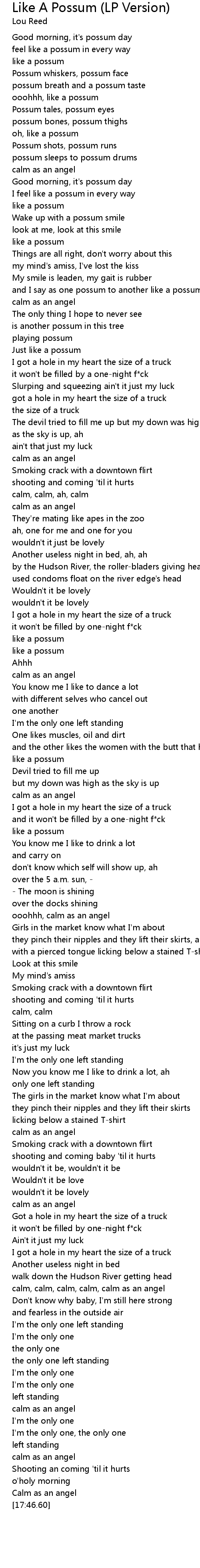 | [04:35.61] | I feel like a possum in every way |