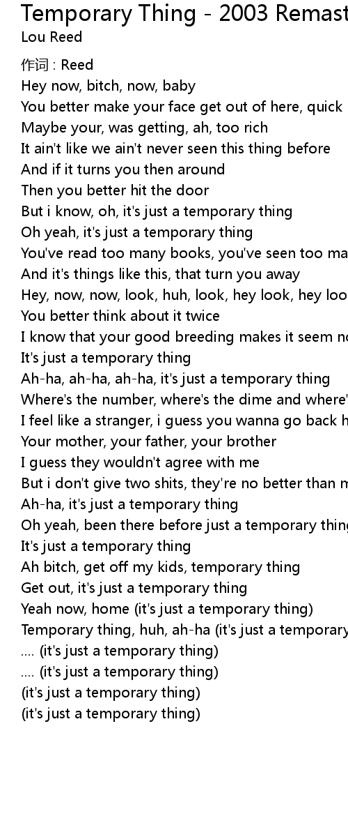 | Temporary thing, huh, ahha it' s just a temporary thing | |