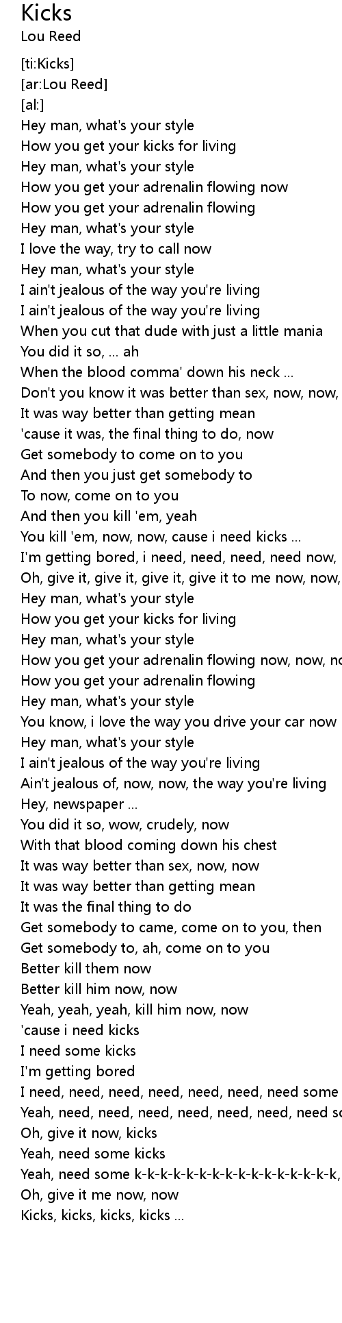 You kill 'em, now, now, cause i need kicks ... |