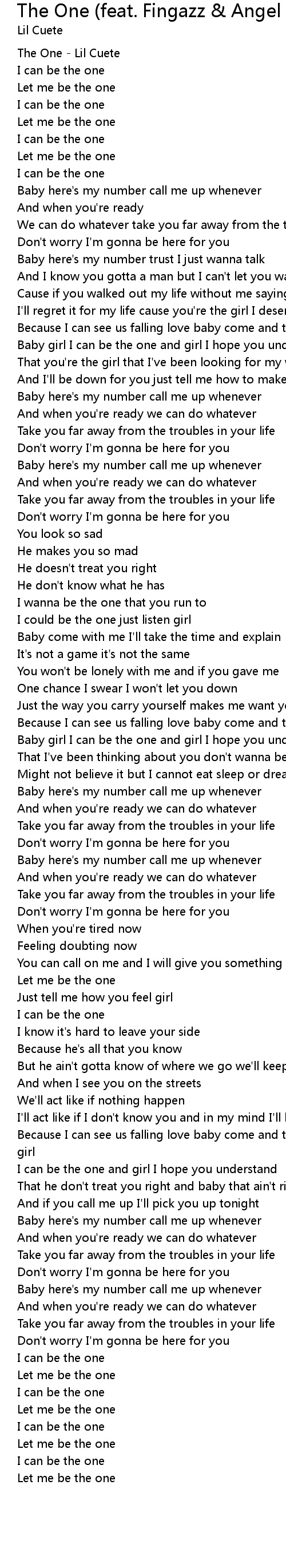 | [00:00.10] | The One - Lil Cuete |