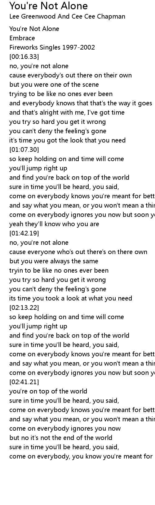You're Not Alone Lyrics