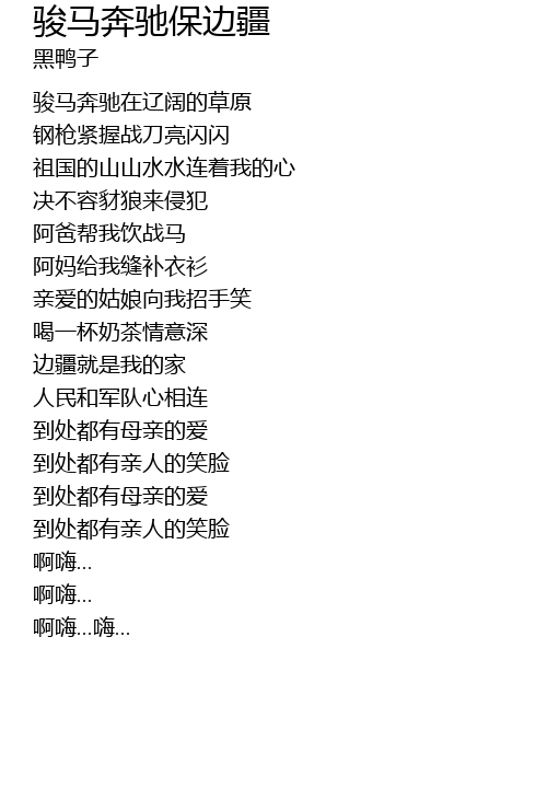 | [00:21.560] | jun ma ben chi zai liao kuo de cao yuan |