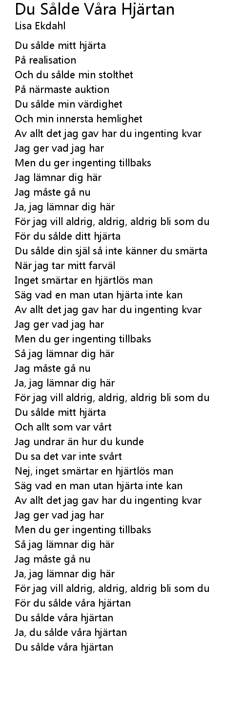 | Song | Du Sålde Våra Hjärtan |