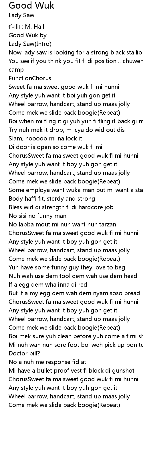 | ChorusSweet fa ma sweet good wuk fi mi hunni | |