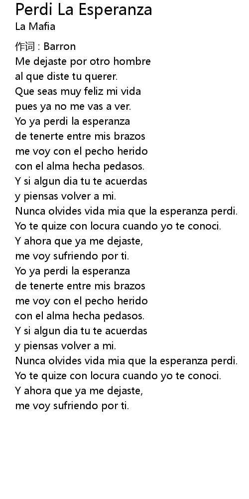 | Nunca olvides vida mia que la esperanza perdi. | |
