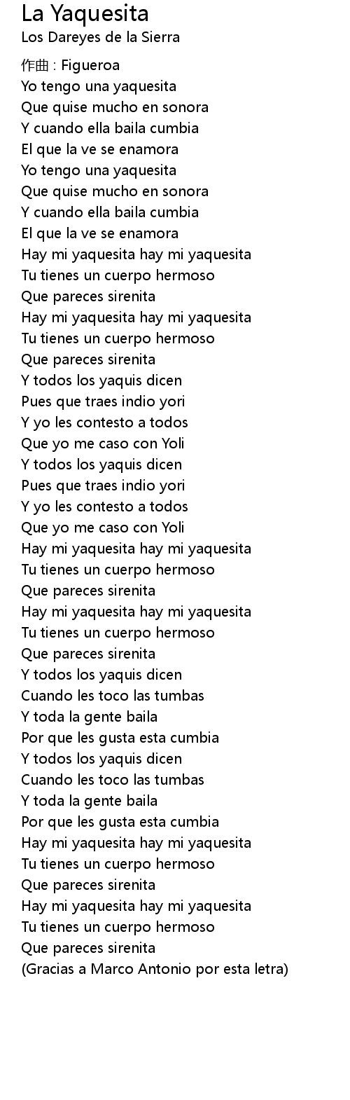 | Gracias a Marco Antonio por esta letra |