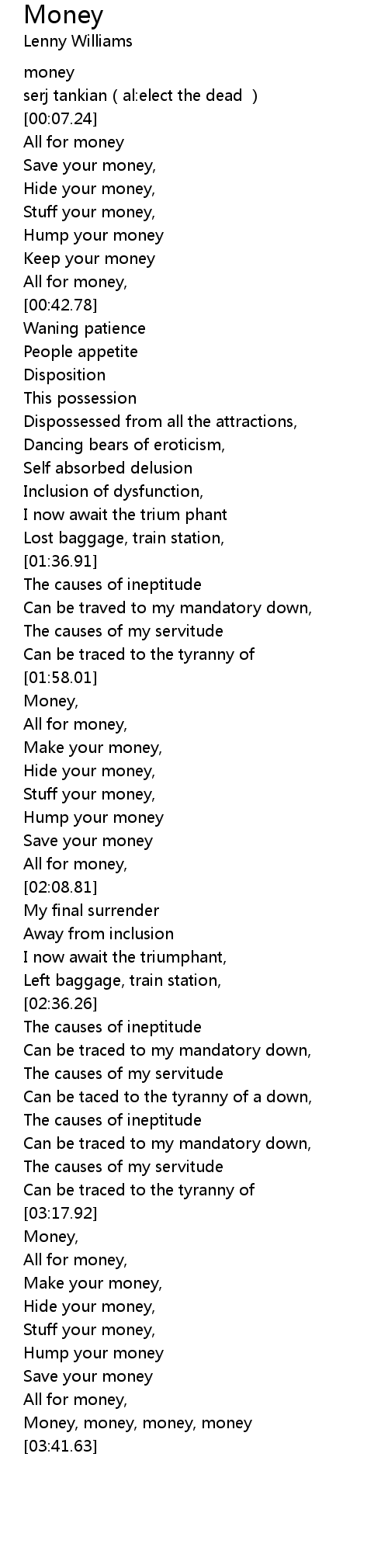 | [03:23.77] | Hump your money |