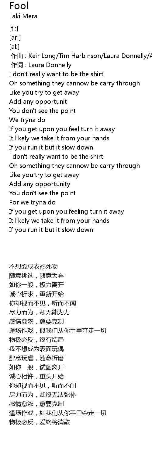 | [00:00.000] | zuò qǔ : Keir Long Tim Harbinson Laura Donnelly Andrea Gobbi |