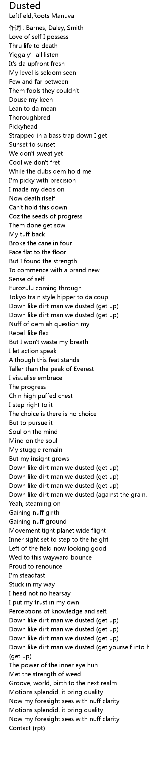| Down like dirt man we dusted get up | |