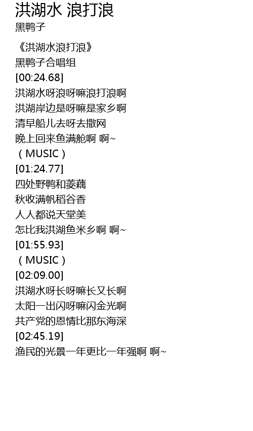 | [02:18.44] | 洪湖水呀长呀嘛长又长啊 |