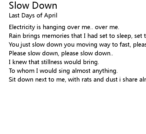 | Song | Slow Down |