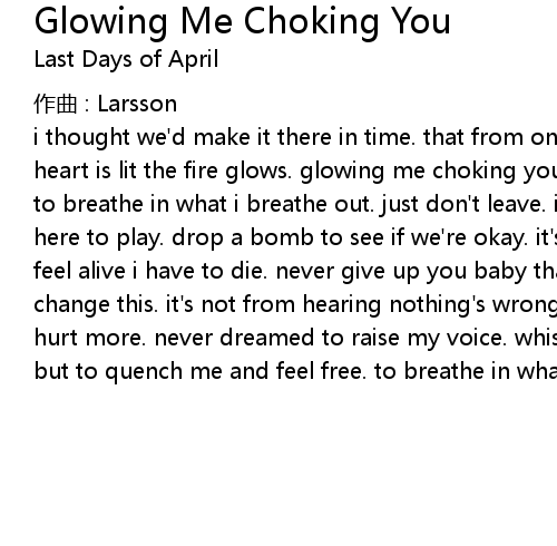 | Song | Glowing Me Choking You |