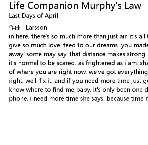 | in here. there' s so much more than just air. it' s all that we used to light up. give so much love. feed to our dreams. you made me swear i' d stay. so don' t walk away. some may say. that distance makes strong hearts break. i want you to know. it' s normal to be scared. as frightened as i am. shaking on the floor. thinking of where you are right now. we' ve got everything here baby. if something' s not right. we' ll fix it. and if you need more time just go ahead and say it. you know where to find me baby. it' s only been one day now. and i ' m already on the phone. i need more time she says. because time makes feelings fade |
