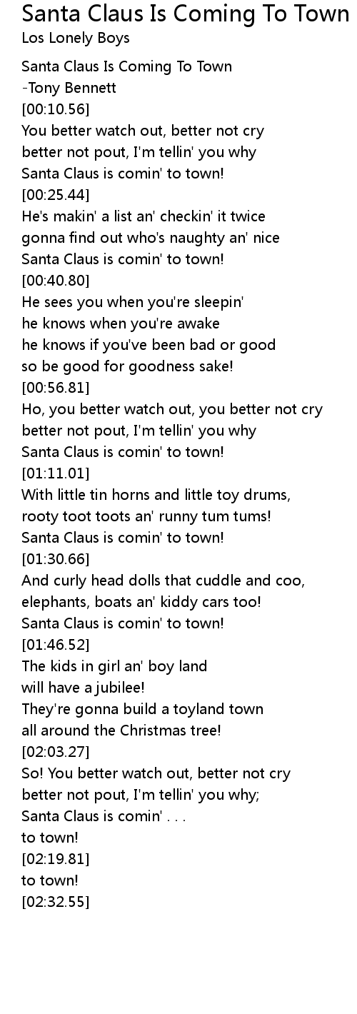 Santa Claus Is Coming To Town (Album Version) Lyrics