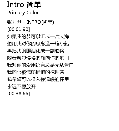 | [00:01.33] | 张力尹 - INTRO(初恋) |