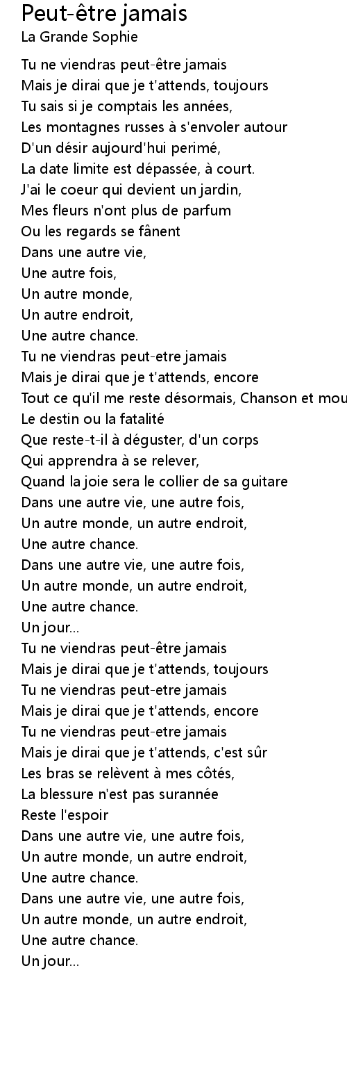 | Tout ce qu' il me reste dé sormais, Chanson et mouchoirs en papier, le sort | |