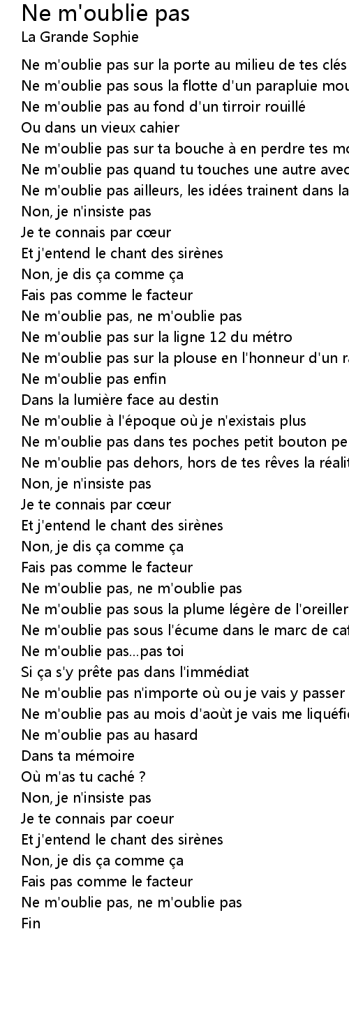 | [02:43.66] | Ne m'oublie pas, ne m'oublie pas |