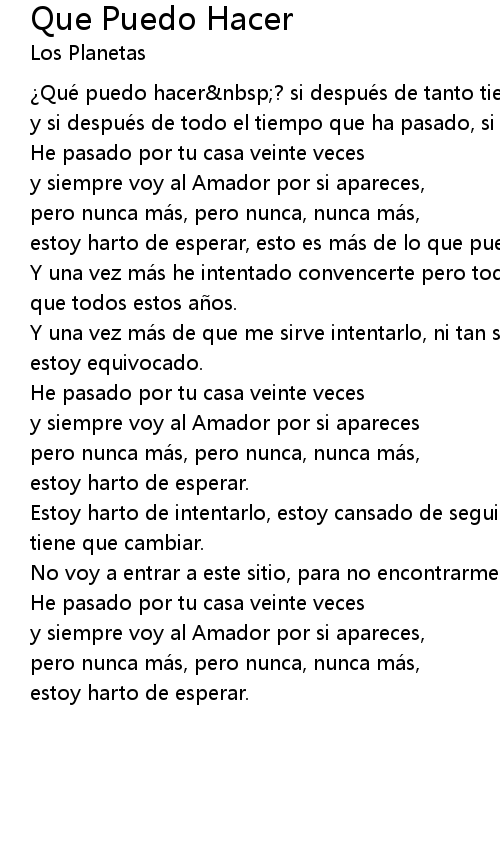 | Qué puedo hacer nbsp? si despué s de tanto tiempo no te dejo de querer | |