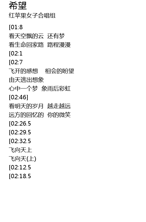 | [02:35.5] | 飞向天(上) |