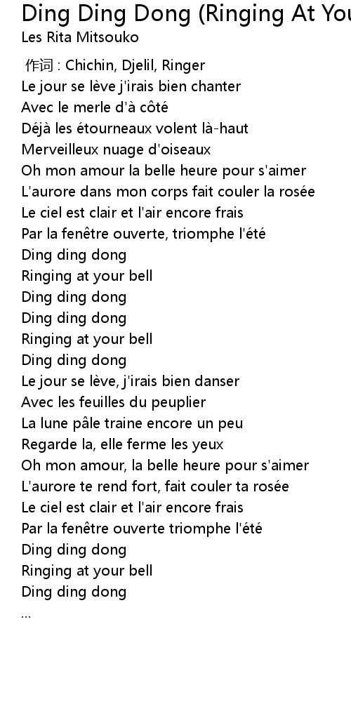 | Song | Ding Ding Dong (Ringing At Your Bell) |