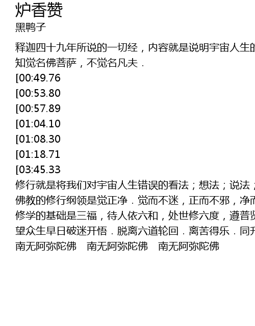 | [04:33.17] | 望众生早日破迷开悟.脱离六道轮回.离苦得乐.同升极乐. |