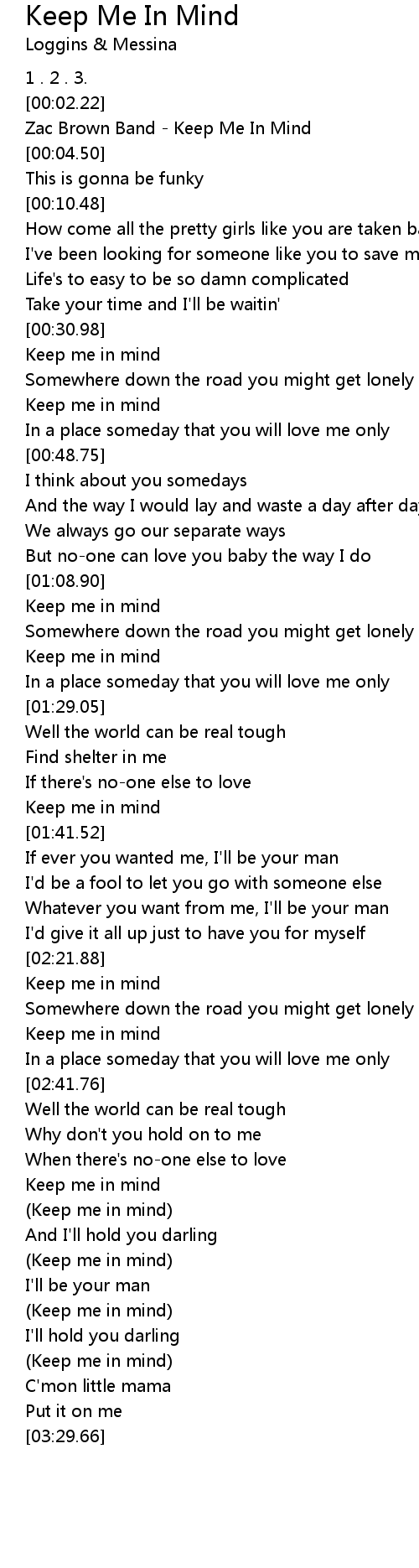 [00:03.51] Zac Brown Band - Keep Me In Mind