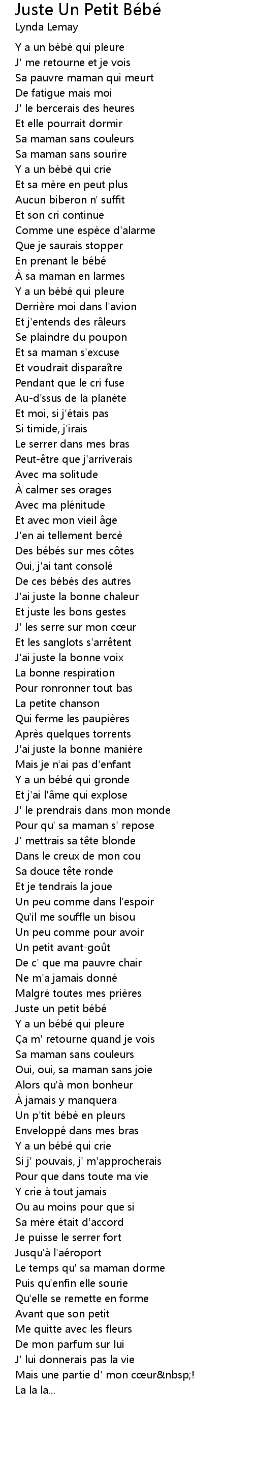 | Song | Juste Un Petit Bébé |