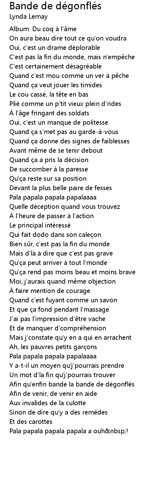 | Afin qu' enfin bande la bande de de gonfle s | |
