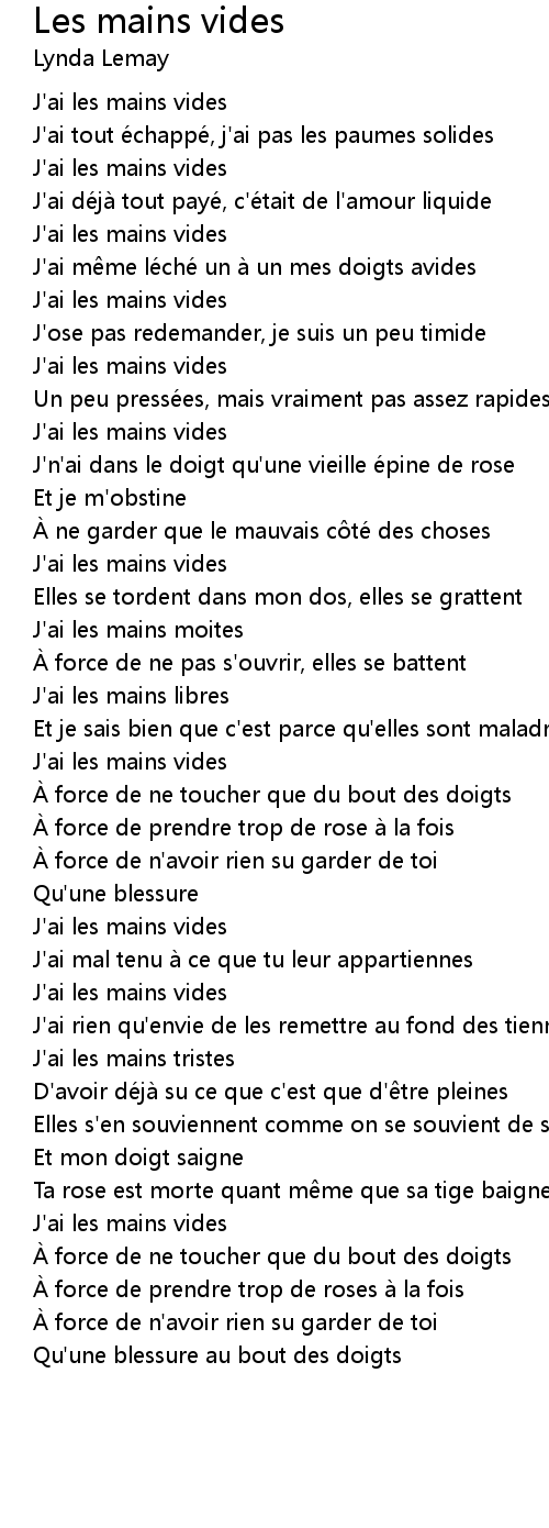 | J' ai tout e chappe, j' ai pas les paumes solides | |