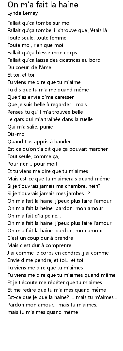 | Song | On m'a fait la haine |