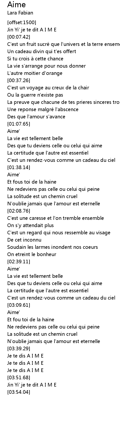 | [03:39.67] | Je te dis A I M E |