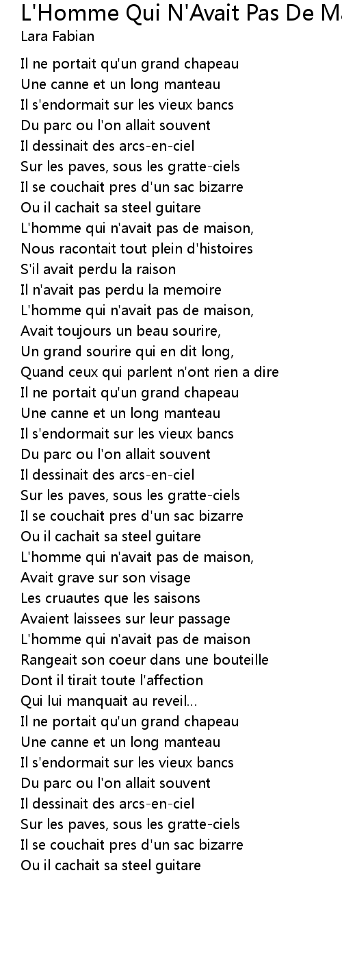 | Song | L'Homme Qui N'Avait Pas De Maison - Au Zénith De Paris |